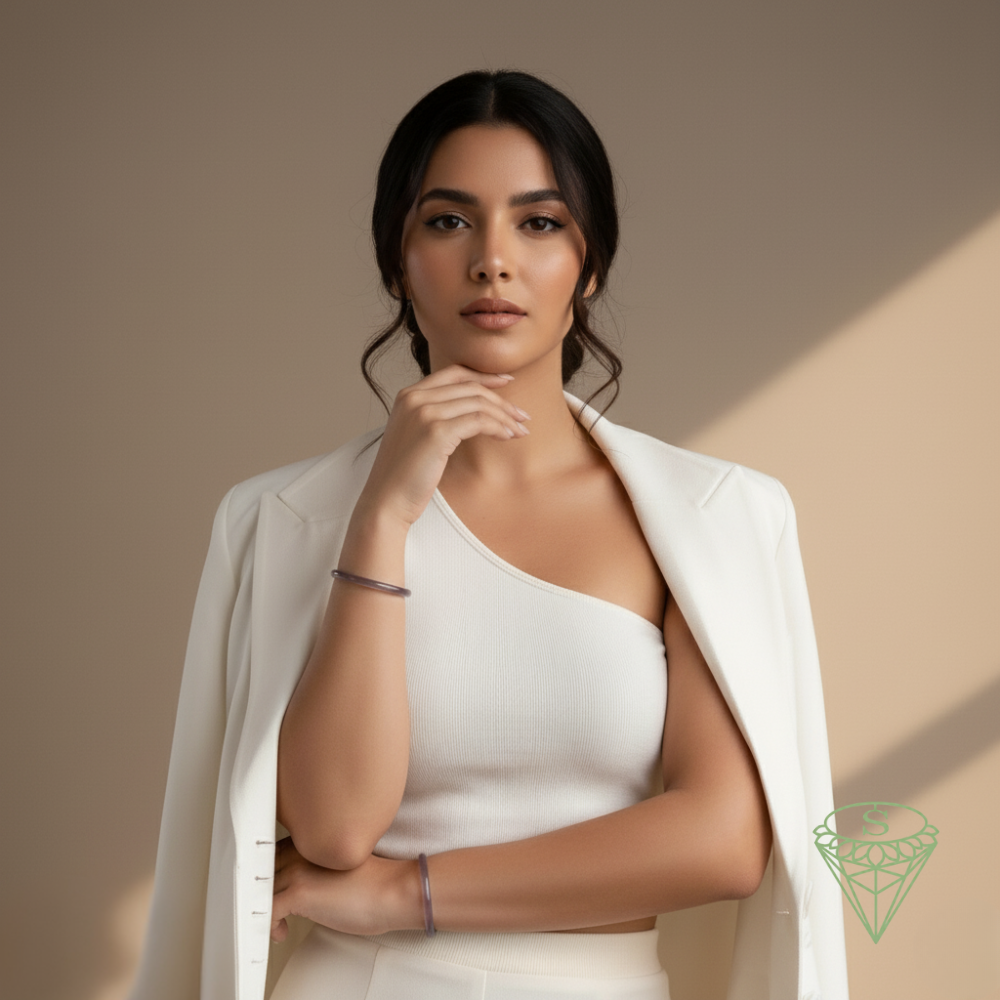 Luxurious Color and Soothing Energy! I am absolutely obsessed with this color—it's a deep, translucent purple that gives off a sophisticated glow. The stone is incredibly smooth and feels wonderfully cool and solid on my wrist. I bought it not just for its beauty, but also for the calming and stress-relieving properties often associated with purple stones. It’s a gorgeous piece that brings me a sense of peace and clarity every time I wear it.