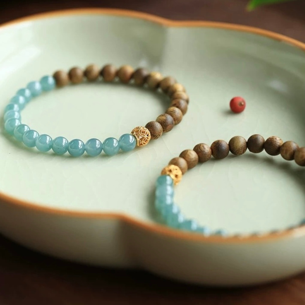 Experience luxury with the "Emerald Agarwood Fusion Bracelet"—crafted with half emerald jade and half rare qi nan agarwood, this 14–17 cm (5.5–6.7 inches) piece from Picade de Jade blends nature’s finest for a unique, elegant look. Get yours now!