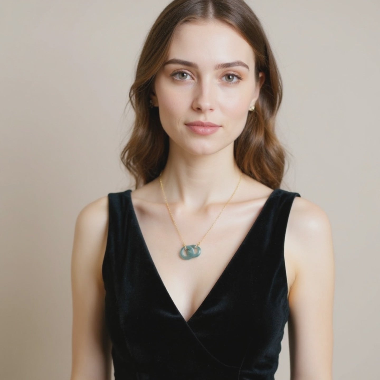 Exude sophistication with the "Emerald Interlock Elegance Necklace"—crafted from emerald jade with an intricate interlocking ring design, this adjustable 40–45 cm (15.7–17.7 inches) piece from Picade de Jade is a timeless treasure. Get yours now!