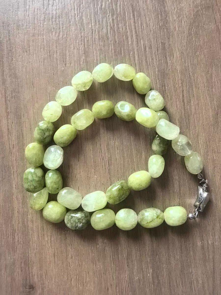 Shine with natural charm in the "Green Quartz Glow Chain Necklace"—crafted from beautiful green quartz, this elegant piece measures 42 cm (16.5 inches) from Picade de Jade. Get yours now!