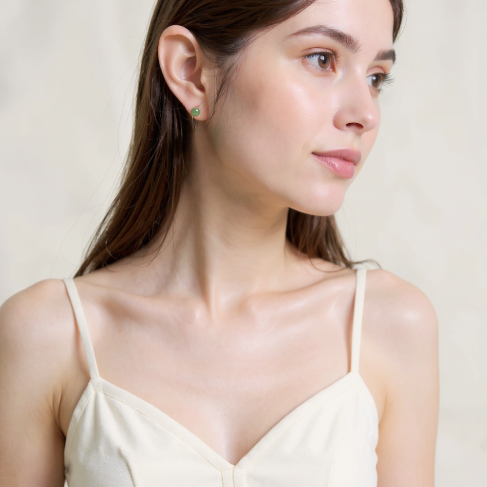 Shine with elegance in the "Jade Emerald Glow Studs Earrings"—crafted from luminous emerald jade and set in 925 sterling silver, these stunning studs from Picade de Jade are a must-have. Get yours now!