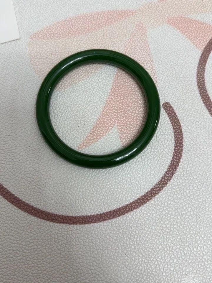Meet the Forest Zenith: This isn't just green; this is the Zenith —the deepest, most saturated green found in nature's heart. This stunning Jadeite boasts a rich, uniform color and an incredible, mirror-like luster that rivals the finest emeralds. Its pure, vibrant hue is a classic symbol of wealth, prosperity, and everlasting vitality. The substantial feel of this bangle makes it a true heirloom piece.