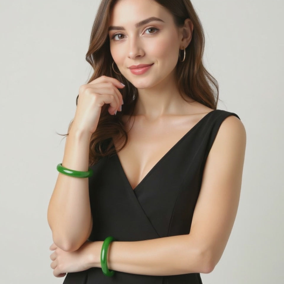 Adorn your wrist with the "Jade Green Ripple Bracelet"—crafted from vibrant emerald jade in a lush green hue from Picade de Jade. Get yours now!