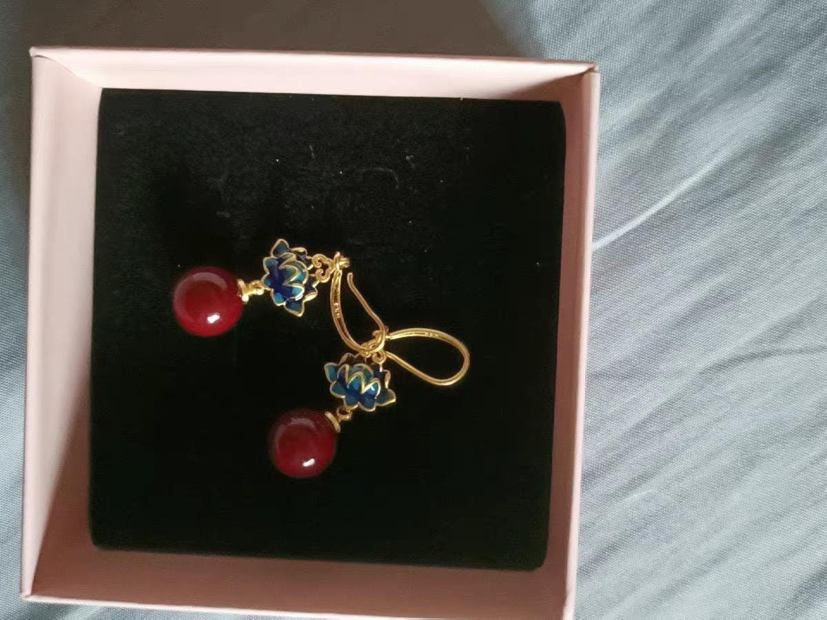 Adorn yourself with the "Ruby Lotus Drops Earrings"—crafted from natural cinnabar and set in 925 sterling silver, these stunning 4 cm x 1 cm pieces feature an elegant lotus design from Picade de Jade. A perfect blend of tradition and style—get yours now!