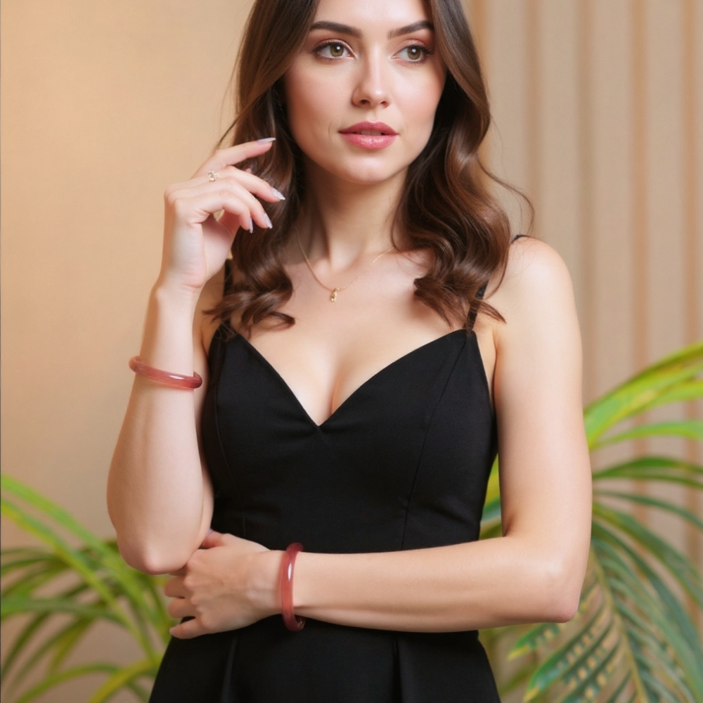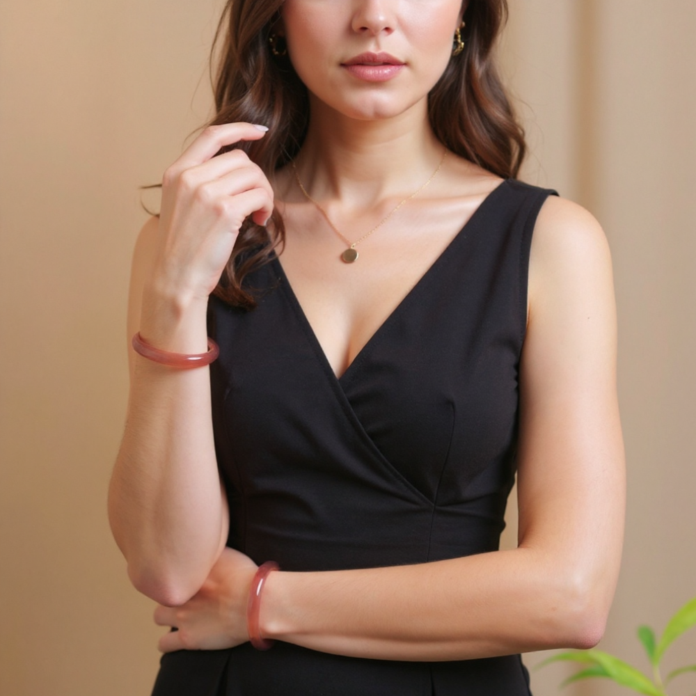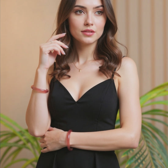 Attract love and elegance with the "Strawberry Quartz Love Charm Bracelet"—crafted from vibrant strawberry quartz, believed to draw romantic energy, available in sizes 51–52 mm (2.0–2.0 inches), 53–54 mm (2.1–2.1 inches), 55–56 mm (2.2–2.2 inches), 57–58 mm (2.2–2.3 inches), 59–60 mm (2.3–2.4 inches), and 61–62 mm (2.4–2.4 inches) from Picade de Jade. Get yours now!